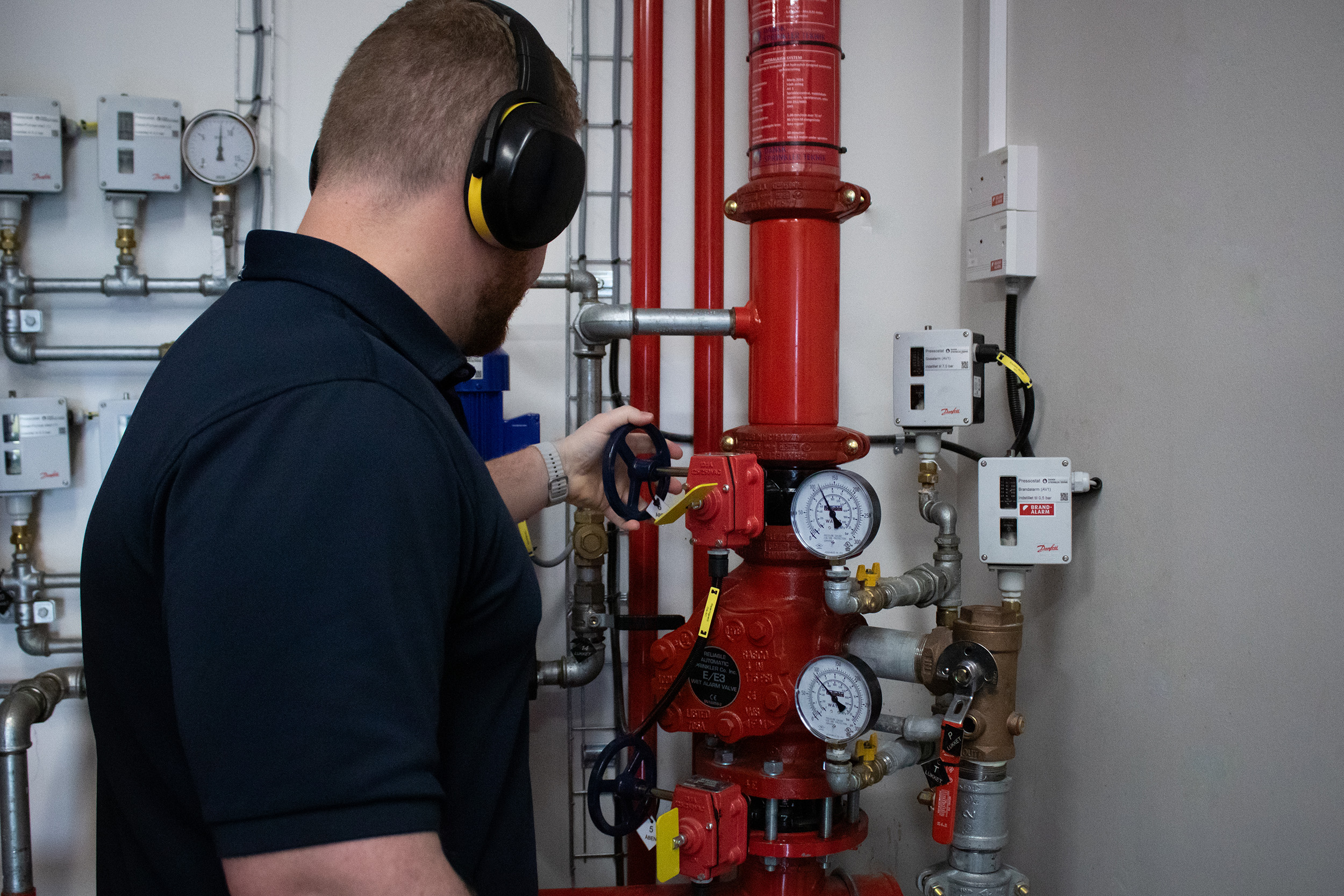 Vi sørger for vedligeholdelse og eftersyn af brandtekniske anlæg – herunder sprinkleranlæg (AVS), brandalarmanlæg (ABA), rumslukningsanlæg (ARS), tone og talevarsling (AVA) og brandventilationsanlæg (ABV).